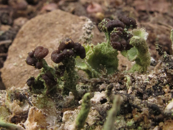 Cladonia ramulosa. Un campione con apoteci più neri.