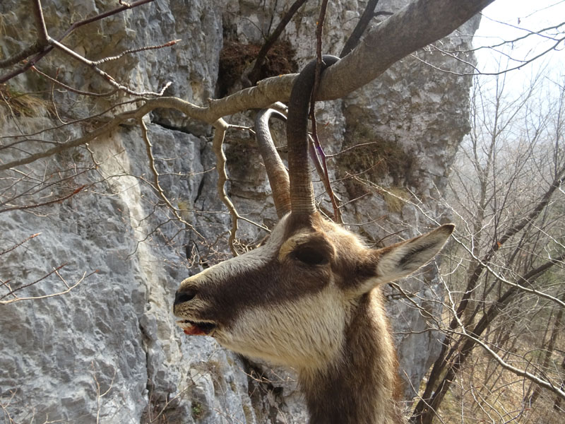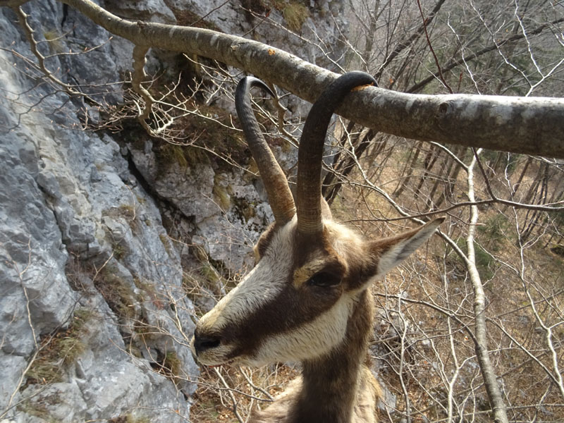 È appeso per un corno?? È rimasto così cadendo dall'alto? Un camoscio cadente? Devo esprimere un desiderio?  |