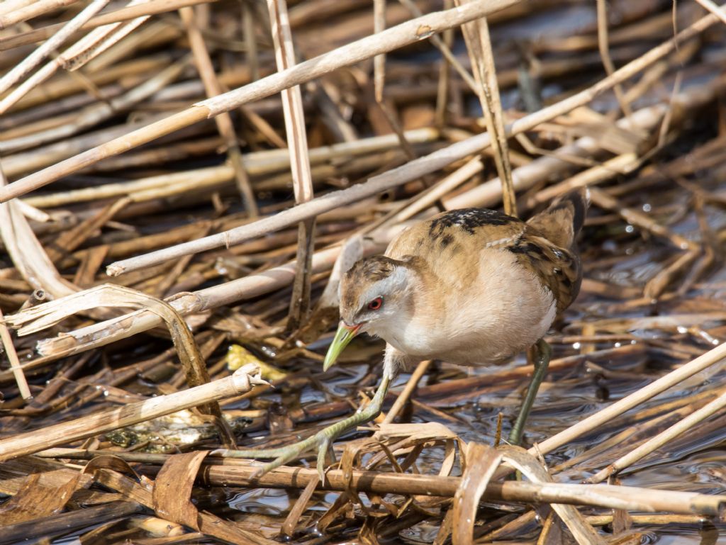 Sgambettano con regolarità sotto un bel tappeto di fragmite buttato giù dalle intemperie; poi quasi fossero anfibi vengono "a galla" per spostarsi poco oltre.