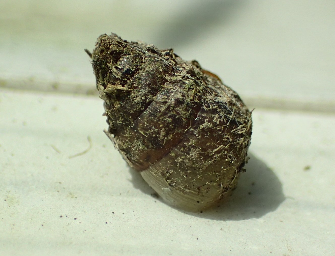 Isola Serafini, presso il Po, al confine fra Lombardia ed Emilia, su un prato xerico (ex cava di sabbia) dove ho visto solo Monacha cartusiana, c'erano anche queste chioccioline dal guscio sporco di detriti, attaccate al lato inferiore di fogli di plastica ("shelter") presenti al suolo. Ne ho viste una ventina, le più grandi erano alte circa 7 mm. Tutti i gusci erano sporchi, come nelle foto. Ho pensato a giovani di Rumina decollata (anche se non sono per niente convinto perchè la forma mi sembra un po' diversa e perchè non ho mai visto prima rumine col guscio sporco) dato che in questa zona non capisco cos'altro potrebbero essere...che ne pensate? Immagine: