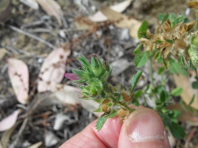 Grazie Bruno, l'habitat è il suo.L'altra specie con cui si può confondere è la Ononis variegata, ma qui si intravede un fiore di colore violaceo, mentre O. variegata ha un fiore giallo. Il portamento e le foglie sono simili.