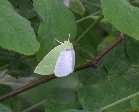 Ad occhio nudo pensavo che la falena bianca fosse posata su una foglia; solo guardando le foto a casa ho capito che era appoggiata su una falena verde.