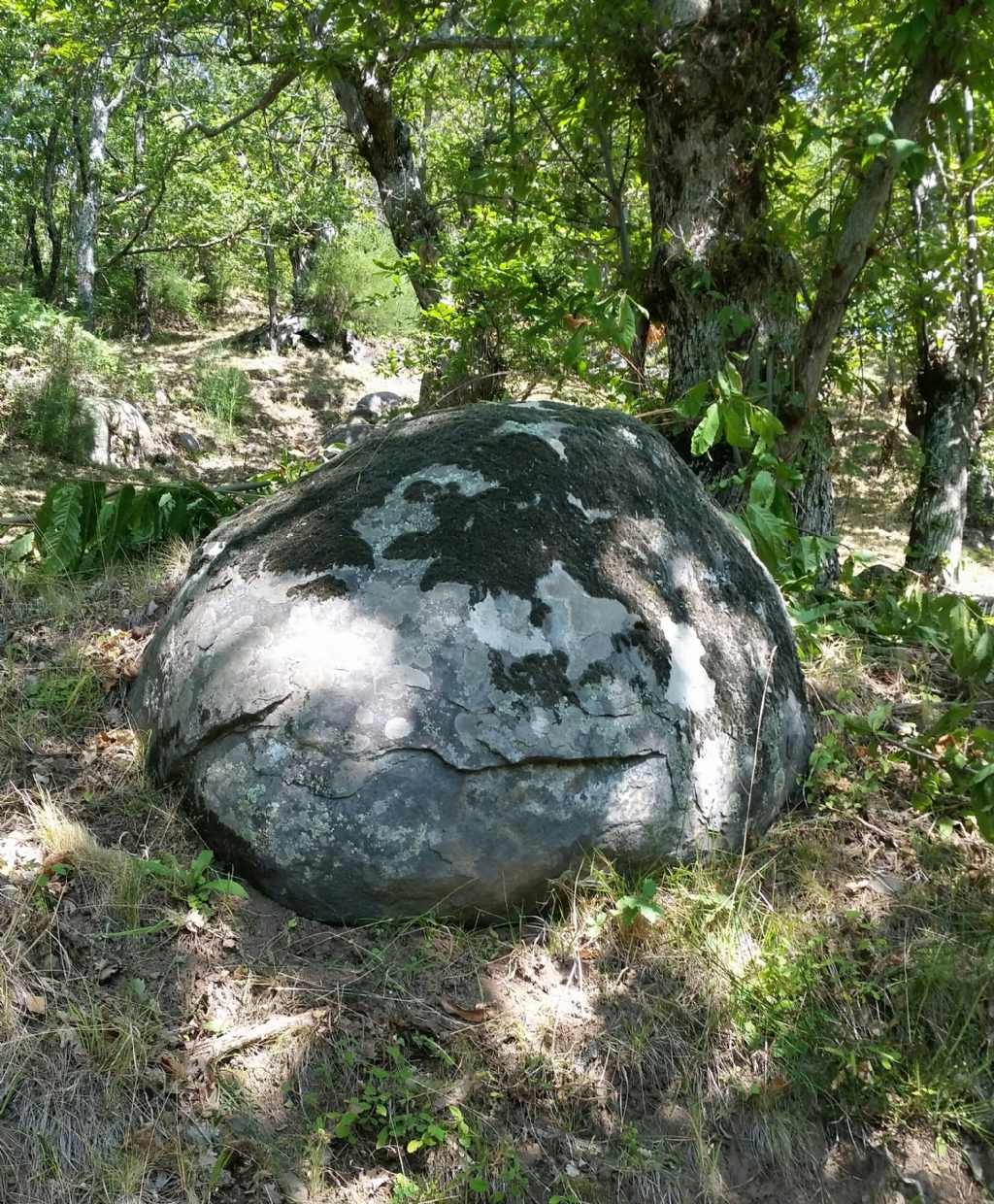 Questa foto l'ho scattata il 27 agosto sul versante orientale del vulcano di Roccamonfina, ad una quota di circa 410 metri, si tratta di 7n grosso blocco quasi perfettamente sferico, von uj volume all'incirca di un paio di metri. Come si è formato? Quello che si vede è la desquamazione cipollar