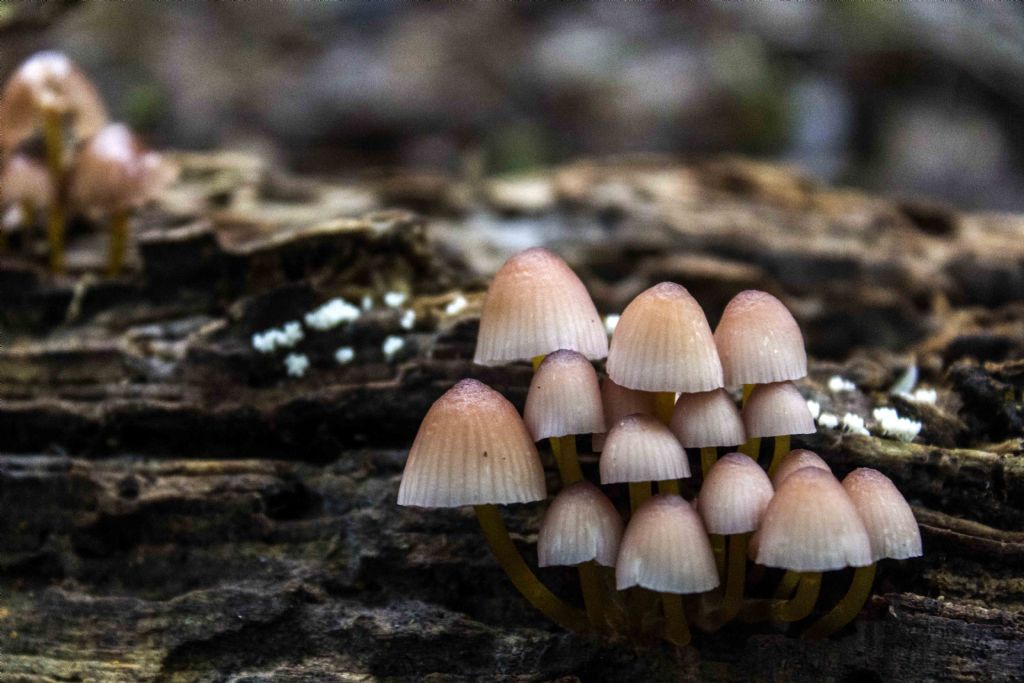 sto identificando un po' di funghi su legno marcescente.