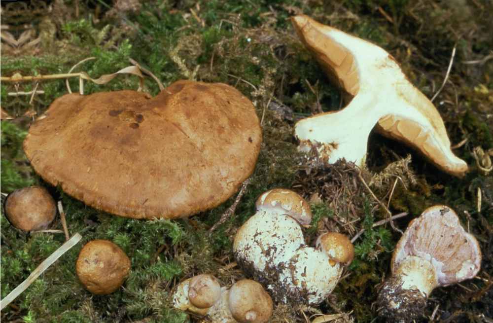 Cappello: #8709; < 105 mm convesso, convesso-spianato di forma regolare, cuticola asciutta anche nel giovane o al massimo lievemente appiccicaticcia, feltrata – tomentosa, di colore fulvo-beige o bruno grigiastro, con tonalità lilacine al margine chiare nel giovane ma talvolta appena presenti anche nell’ adulto, lamelle fitte, L – 90 al gambo, alte, sottili e fragili, adnate, lilacine, gambo corto e tozzo, 50 mm x 15 mm, cilindrico, da bulboso a fortemente bulboso- (sub) marginato, concolore al cappello o più pallido ocraceo, fortemente fibrilloso per il velo ocraceo, in gioventù toni lilacini all’ apice, carne bianca, soda, odore nullo, gusto gradevole; reaz. chim.= alle basi forti brunastro poi (molto lentamente) grigioporpora. Rilievi microscopici: spore amigdaliformi, lievemente mucronate, medie, con ornamentazioni medie, regolari, salienti (9,2 ) 10,3 – 11,5 (-12,1 x (5-) 5,6 – 6,5 (-7,5) #956;m; imenio: filo quasi sterile per la presenza di numerosissime cellule sterili claviformi; basidi tetrasporici 34 - 40 x 8 - 9 #956;m; pileipellis: epicute formata da ife grosse. cilindriche x 6 – 10 #956;m, intrecciate e con peli emergenti arrotondati; ipodermio in acciottolato; pigmento fortemente incrostante le ife dell’ epicute in forma di placchette, giunti a fibbia abbondanti, cortex: all’apice presenza di peli con punta lanceolata. Habitat: piuttosto comune in tarda primavera in Carnia in faggeta o pecceta