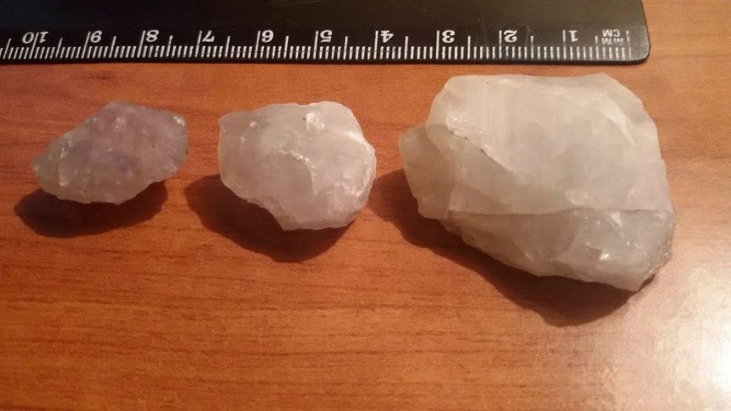 prova a scalfire i campioni con la punta di un temperino: se riesci a rigarli si tratta probabilmente, tra i minerali più comuni, di calcite ovvero, se l'esito è negativo, e sempre tra i minerali più comuni, di quarzo; inoltre la calcite reagisce vivacemente con un po' di acido cloridrico diluito, il quarzo no;