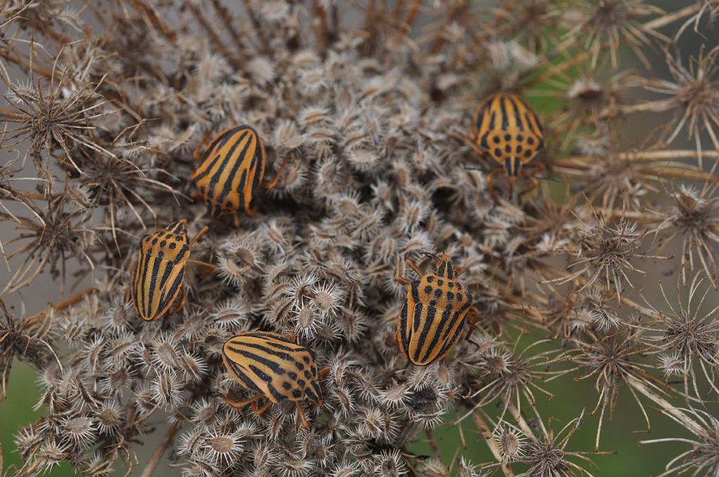 Pentatomidae: Graphosoma semipunctatum - ninfa e adulti