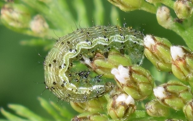 scusate se mi intrometto, ma volevo chiedere se anche questa larva (che ho trovato sul terrazzo a metà settembre) può essere di Helicoverpa armigera, ma uno stadio larvale successivo. dalle foto che ho visto su internet ci assomiglia molto. Immagine: