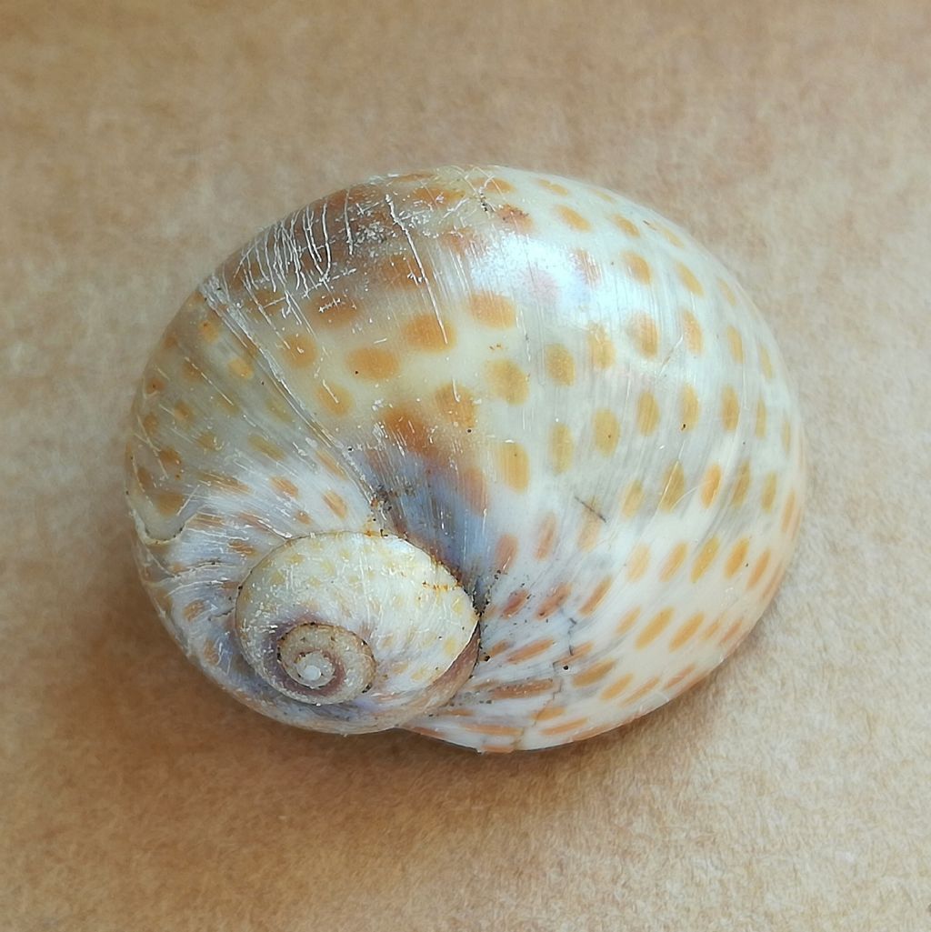 Questo grazioso gasteropode della famiglia Naticidae - Cochlis raropunctata (Sasso) - conserva frequentemente la pigmentazione originale. Esemplare dello Zancleano piacentino, 26 mm di diametro.