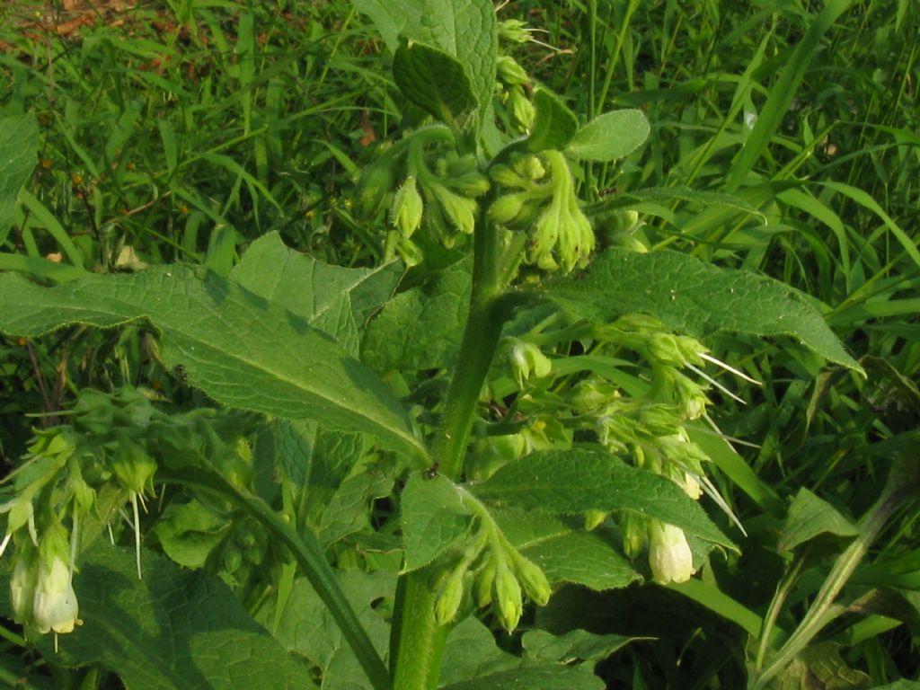 Ad una prima occhiata, stando alla chiave su questo Link ho un dubbio iniziale tra Symphytum tuberosum e Symphytum officinale. Il fusto è alato completamente tra gli internodi, o solo in parte? I denti del calice sono due oppure tre colte più lunghi della parte di calice non intaccata? Guardando il periodo di fioritura, comunque, combacia molto di più con quello di S. officinale. Un confronto fotografico mi porta ad escludere S. tuberosum per i denti calicini che non paiono abbastanza allungati nelle tue immagini.