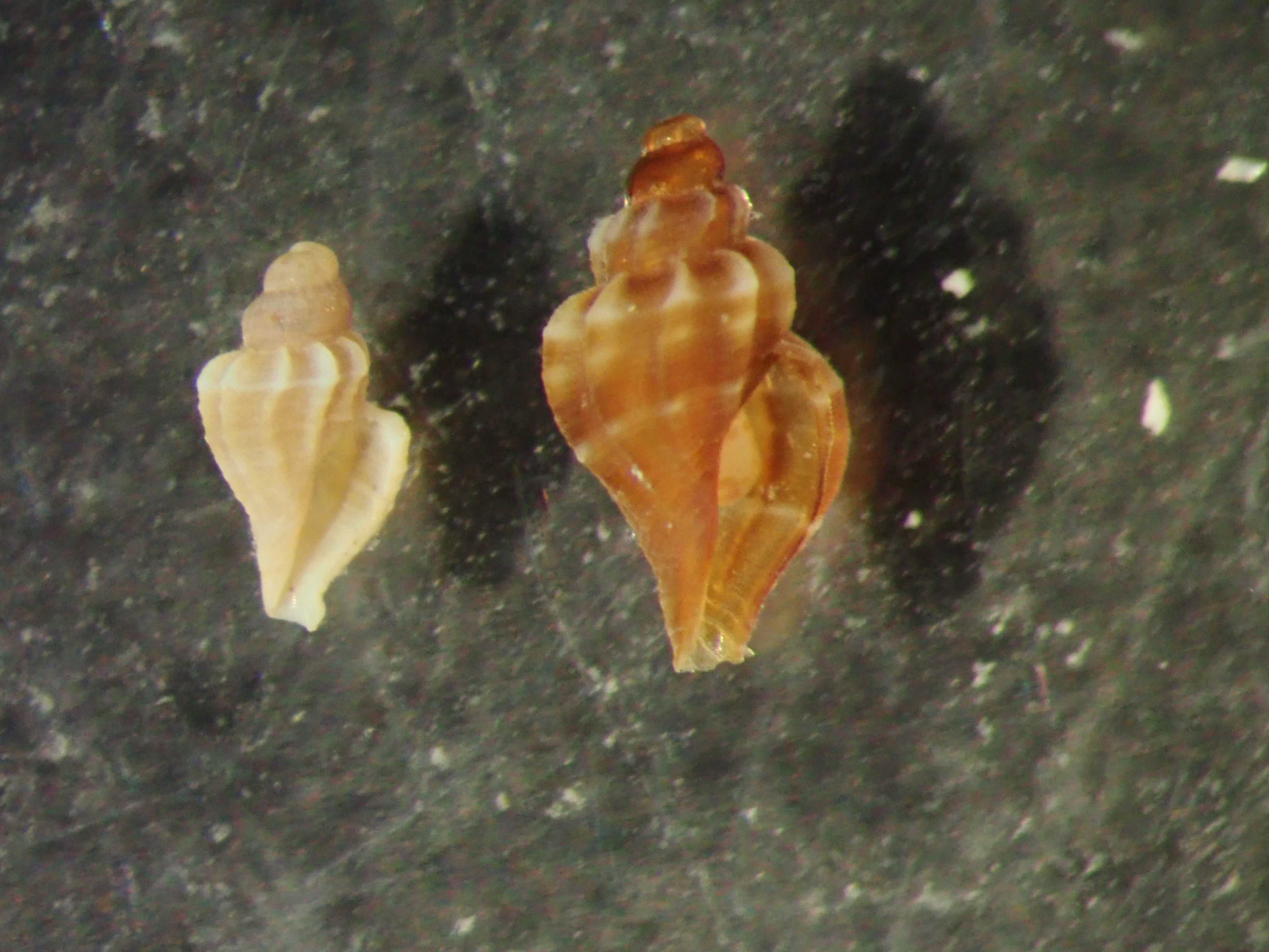 l'esemplare + lungo ritengo che appartenga alla specie M. barashi con proto paucispirale, mentre l'altro dovrebbe avere una protoconca multispirale ed appartenere alla specie M. unifasciata. Comunque quando esponi x identificazione le Mangelia, sarebbe opportuno che fotografassi la loro protoconca allo zenit (sull'asse dell'esemplare), cio' aiuta tanto a contare gli effettivi giri della protoconca, diminuendo gli errori di identificazione.