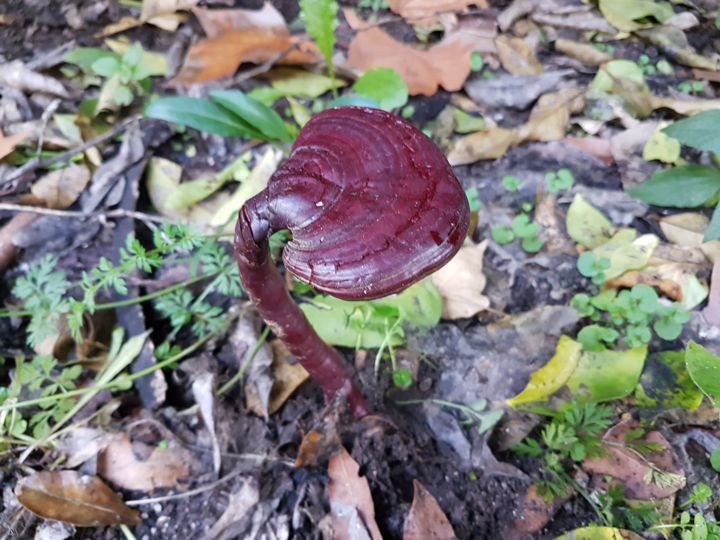 In un post precedente un funghetto "strano" mi è stato classificato come Ganoderma lucidum. Queste foto mostrano un fungo un po' meno strano, ma che gli rassomiglia. E' alto più di 15cm. Desidero sapere se si tratta sempre di G. lucidum. Grazie