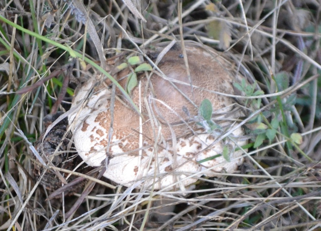 Anche questo fungo gioca a nascondino, probabilmente è Macrolepiota konradi