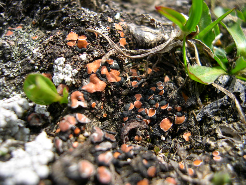 lichen à déterminer, vu près du Col du Mont Cenis à 2600 mètres d'altitude sur la terre juste après la fonte d'un névé