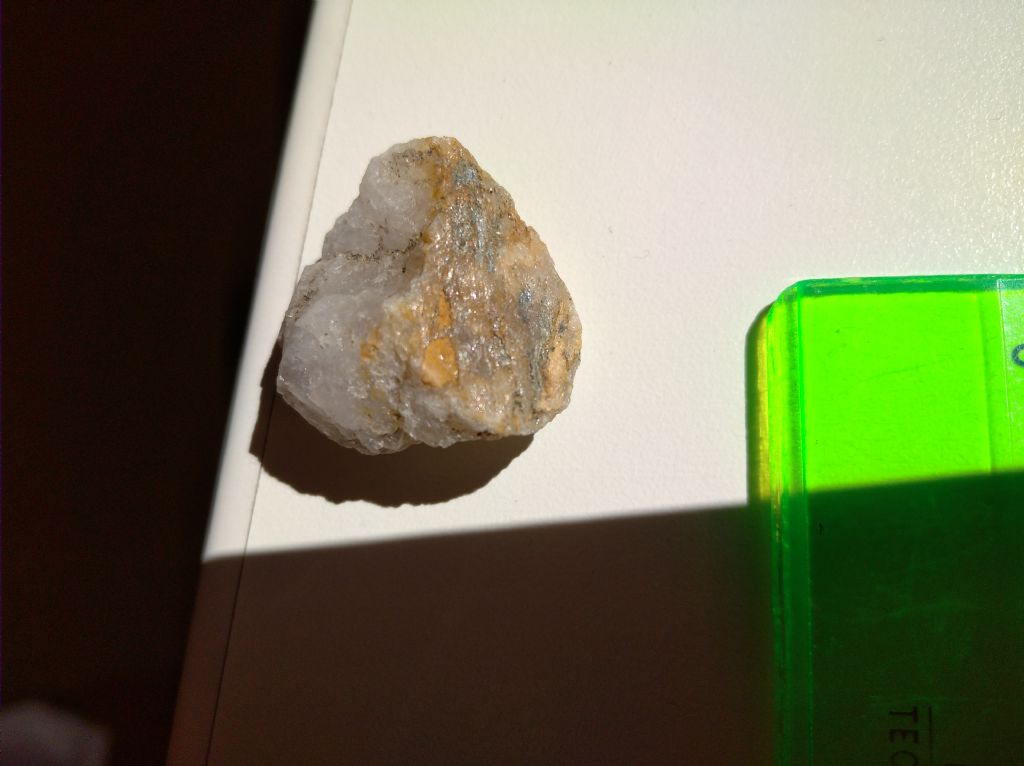 anche su questo minerale farei inizialmente le stesse prove che ti ho suggerito per il primo (sulle tracce aranciate sono sicuramente ossidazioni di qualche elemento metallico, ma dire quale non è possibile). buona giornata |