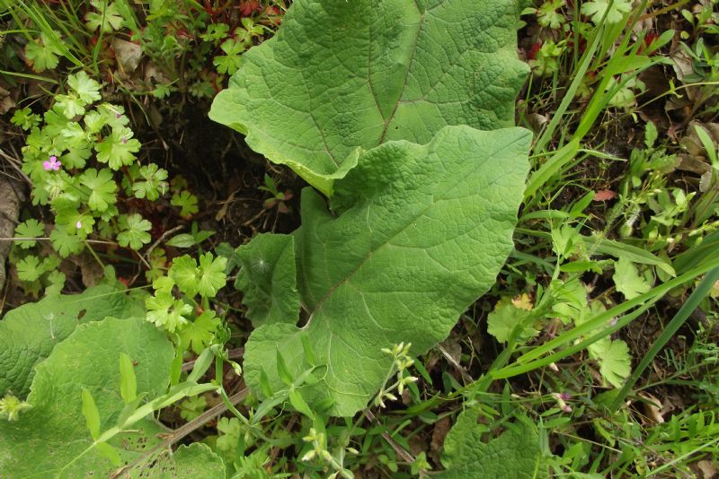 Può essere un Petasites sp., in questo caso probabilmente Petasites hybridus. Il genere è noto per avere foglie tra le più grandi tra le piante erbacee europee. Avevo fatto anche un post-gara in proposito: