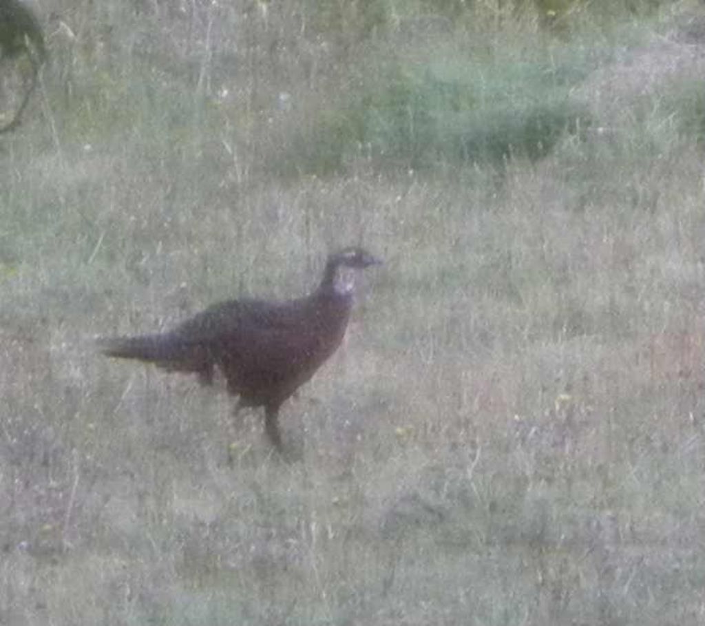 mi pare fosse più grande di un fagiano. aggiungo una foto dove compare insieme al picchio verde, che però era più vicino a me di almeno un paio di metri rispetto al pollo misterioso. Immagine: