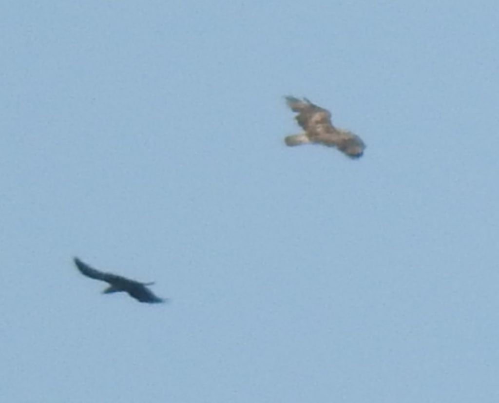 Buongiorno. Foto scattata velocemente prima che l'animale sparisse. Non so se si riesce ad ID.pero' intravedo dei tratti da Aquila minore ( anche per dimensioni, nei cfr delle cornacchie che la mobbavano ).