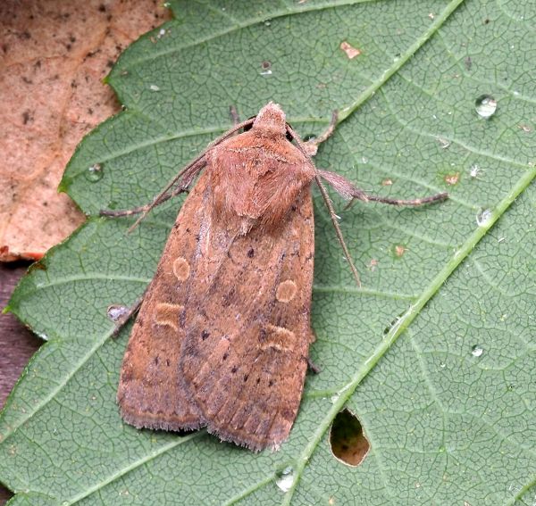 Non mi sembra che interjecta abbia le macchie reniformi e orbicolari con quel bordo bianco...non potrebbe essere Xestia xanthographa