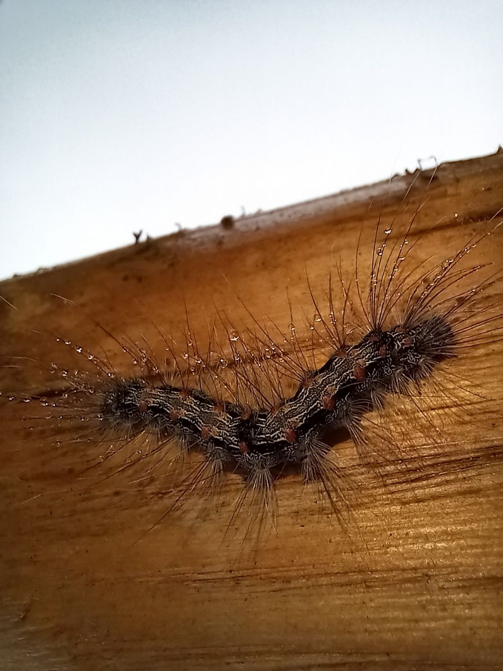 È l'unica foto che ho fatta con lo smartphone...il bruco era posizionato su un tronchetto di ringhiera in legno appunto...