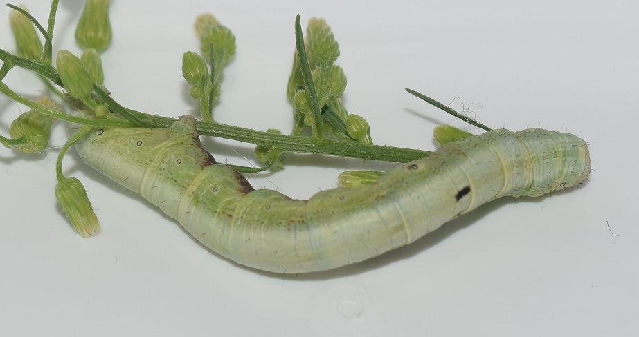 Le larve in generale sono molto variabili, anche marroni e solitamente hanno due piccoli tubercoli. Qui le incontro sempre in verde.