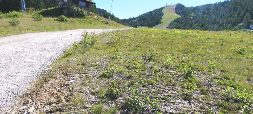 Da quel che si vede si tratta di un'area tenuta libera da alberi o cespugli, forse perchè funzionale agli impianti sciistici visibili sullo sfondo...