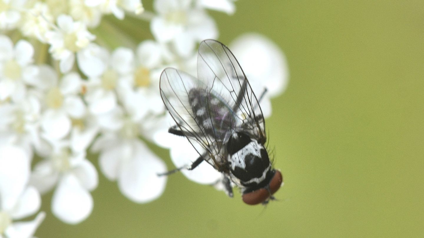 | Anthomyia e Limnophora appartengono a famiglie diverse, rispettivamente Anthomyiidae e Muscidae. In questo caso non credo che l'esemplare con la fascia nera continua sia Limnophora, penso che sia un maschio di Anthomyia quinquemaculata e l'esemplare con le tre macchie principali sul torace separate la relativa femmina. Tieni conto però che queste foto sono inutilizzabili per una determinazione affidabile; occorrerebbero dettagli fini delle antenne, delle zampe e per i maschi anche l'esame dei genitali. |
