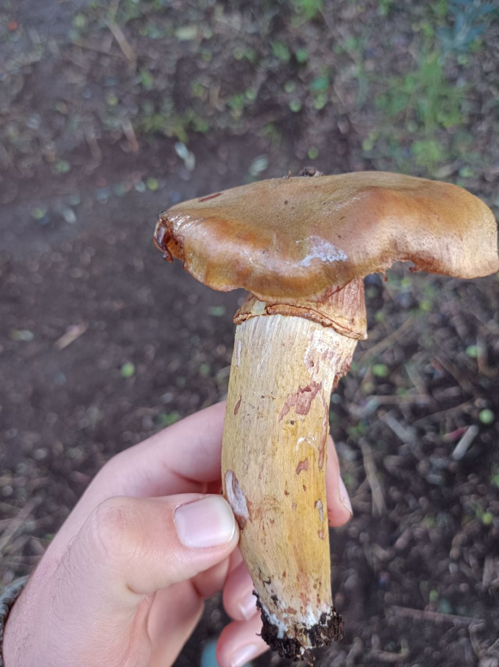 Salve,oggi ho trovato questo fungo sotto un uliveto, 80 metri sul livello del mare, roma, zona pianeggiante, grazie in anticipo