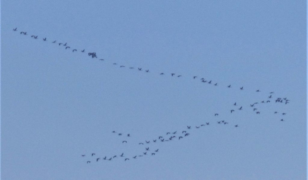 Venerdì 30 dicembre 2022 a Racconigi (CN), Centro Cicogne e Anatidi LIPU passate una 90ina di GRU, poi tornate la sera per posarsi nei campi adiacenti