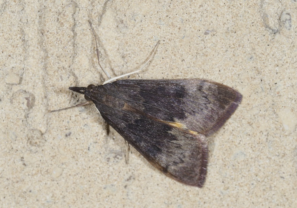 Uresiphita gilvata (ali posteriori gialle), Crambidae.
