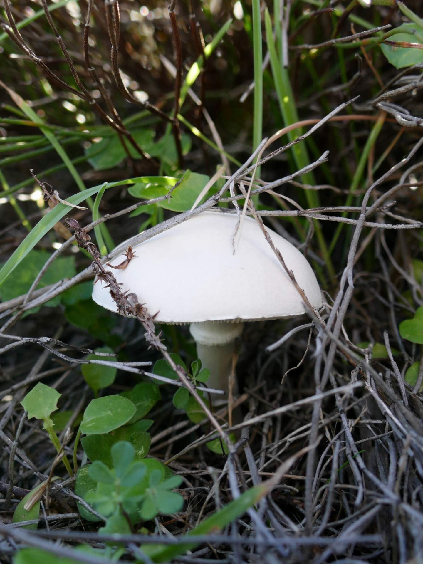 Leucoagaricus leucothites. Adesso sembra che bisogna chiamarlo Leucocoprinus leucothites.