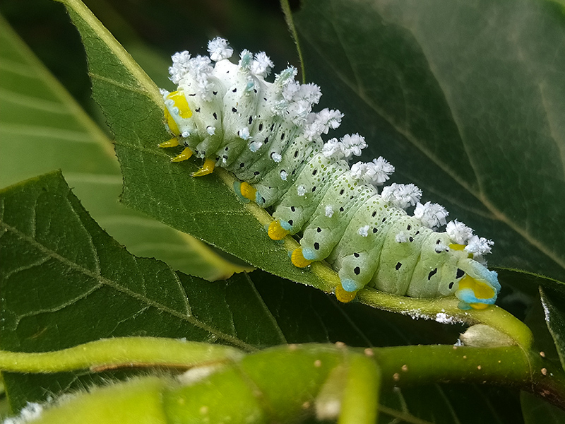 il 26 luglio scorso ho trovato gli splendidi bruchi di questo Lepidottero sulle Magnolia soulangeana del mio vivaio; al momento dell'incontro si presentavano con certe fioccosità bianche che dopo poche ore si erano dissolte: