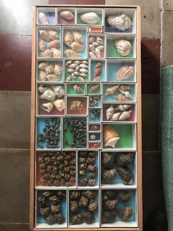 Collezione di alcune migliaia di conchiglie conservate in 19 cassetti contenitori conservati dalla mia famiglia dall'inizo del 900