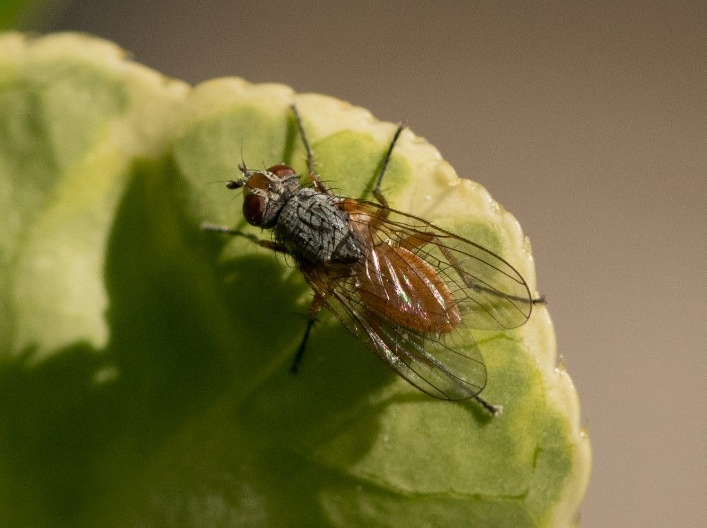 Dovrebbe trattarsi di una femmina di Pegomyia sp, Anthomyiidae, forse Pegomyia bicolor
