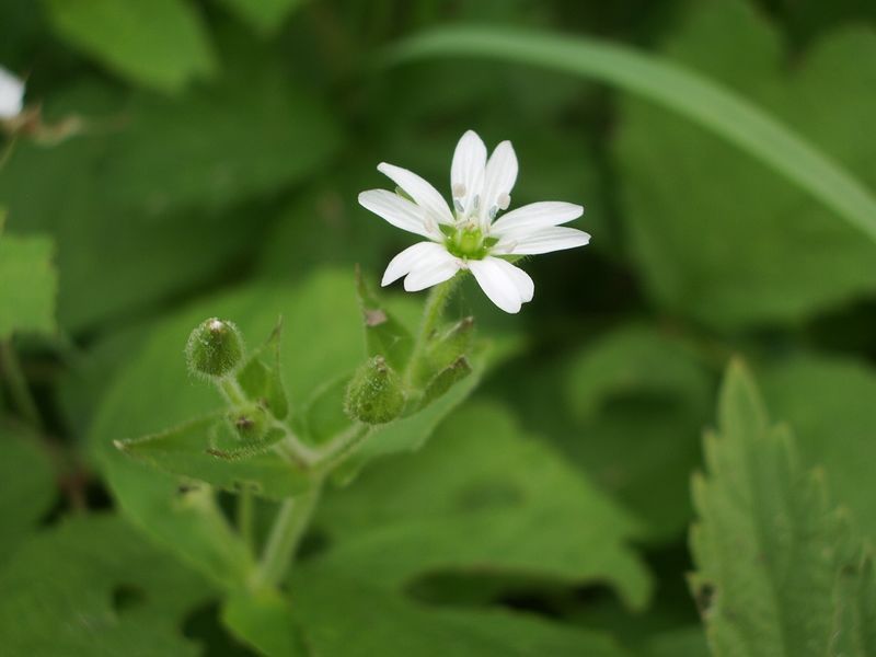 In questo caso, la tua pianta mi ricorda, comunque, una Stellaria, la comune S. media.