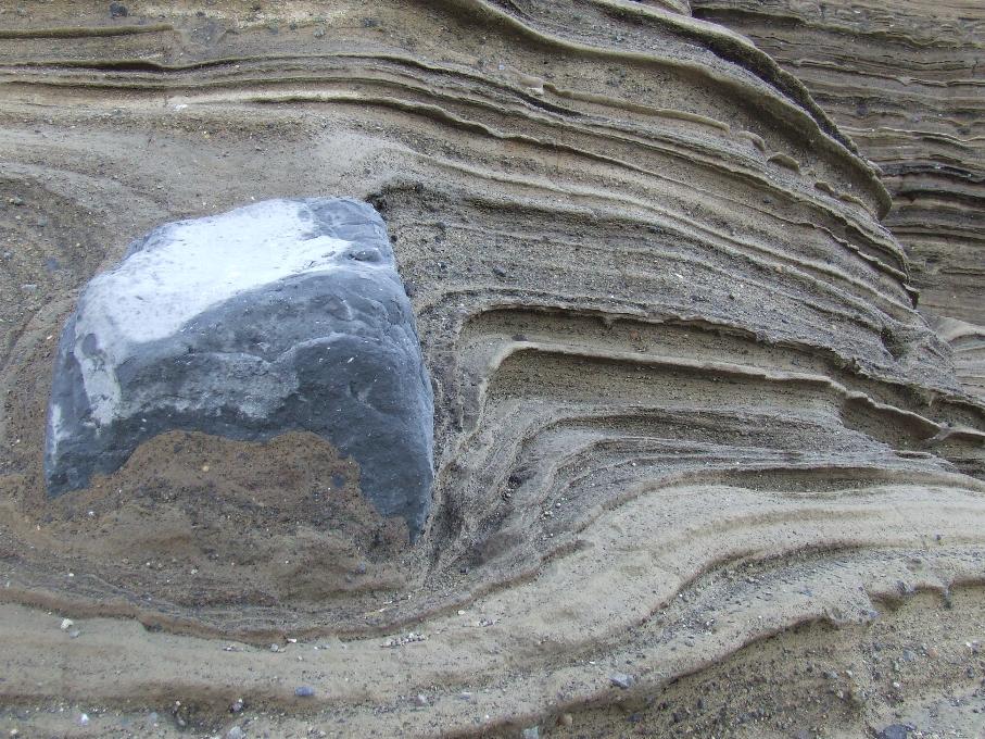 vorrei solo fare una piccola precisazione sulle prime due foto: è evidente la perturbazione della stratificazione in corrispondenza dei blocchi lavici, quindi essi sono stati strappati da un condotto (presumo), durante la fase esplosiva che ha determinato la messa in posto delle piroclastiti, e precipitati al suolo hanno lasciato la chiara impronta dell'impatto...