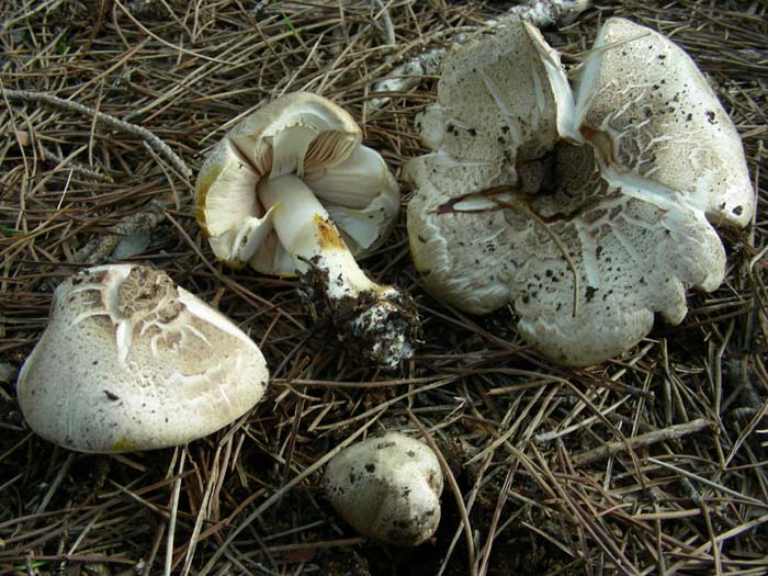 Ciao, io in 1,2,5,6 ci vedo Agaricus praeclarosquamosum e nelle ultime Agaricus xanthodermus (=Agaricus xanthodermus var. lepiotoides. Batman) |
