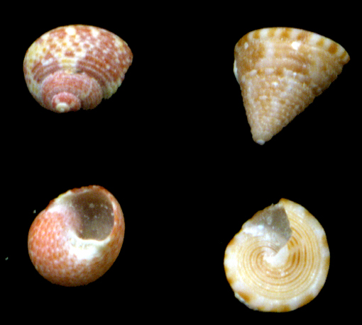 ... e di Trochidi invece sono usciti Jujubinus exasperatus forma tricolor e Jujubinus striatus forma depictus