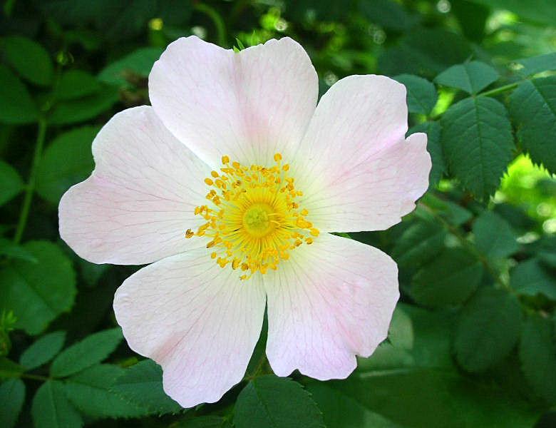 E' una rosa spontanea ..... e direi che si tratta di una Rosa canina.