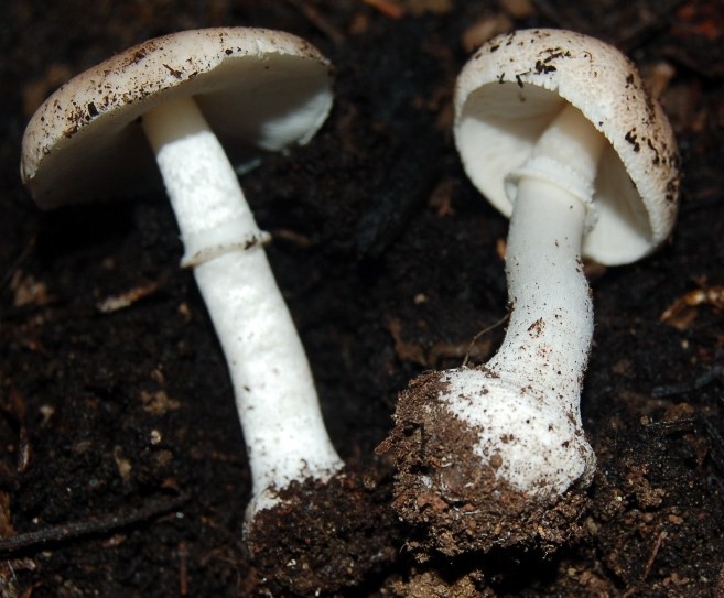 ciao a tutti! Il colore ocra-rosa pallido, l'anello semplice e bianco ed il gambo bulboso orientano verso Leucoagaricus littoralis ma non escluderei anche il L. wichanskyi, tutto dipende dalla micromorfologia. Di sicuro non ha l'aspetto di un Sericeomyces