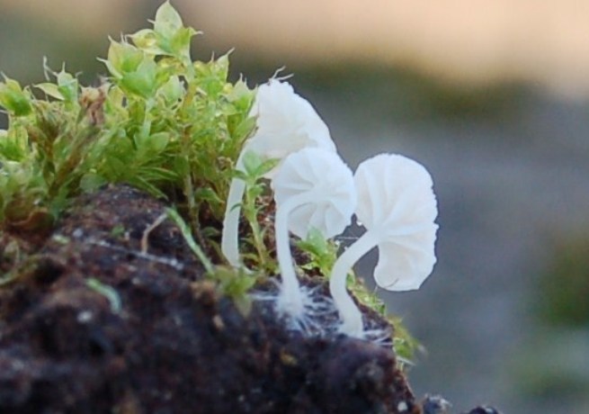 Dice: cappello largo fino a 6 mm., gregari, in gruppi di numerosi esemplari su cortecce ricoperte di muschio e alla base di tronchi muschiosi o no. (Quercus, Castanea sativa, Carpinus, Aesculus, Robinia pseudoacacia).