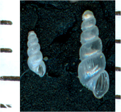 OK per Truncatella subcylindrica a destra, ma l'esemplare di sinistra, se come appare dal righello la scala è la stessa, ha una protoconca che è un decimo dell'altra, sarebbe interessante vederla più ingrandita ed in norma fronyale. Ciao.