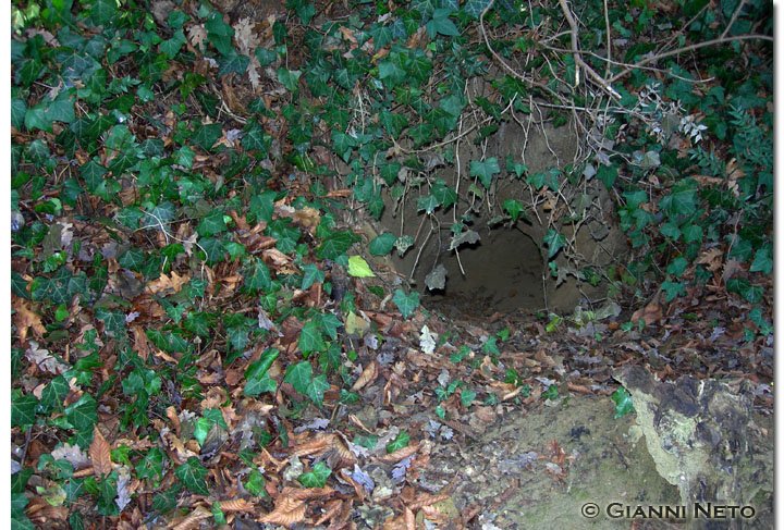 Ciao Alessandro, intanto grazie per le preziosissime informazioni, in quanto alla foto dell'ingresso che ho messo, è vero, quella probabilmente era al momento inutilizzata, ma in quella zona, un costone che sembra un famoso formaggio svizzero dai buchi che ci sono, ne ho fotografate almeno una ventina, alcune molto grandi e sicuramente usate. Ho anche provato a fotografarli senza successo, anche se mi è arrivato a circa due metri, ero completamente al buio (alle 23) e ci siamo "visti" solo all'ultimo, morale, lui ha emesso una sorta di "grugnito" ed è scappato a gambe levate e io sono rimasto con le pive nel sacco  ciao