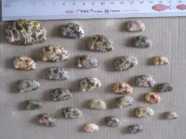 Queste erano altre 28 stomathieformis da Lampedusa, che con le 27 regalate o scambiate fanno 55, trovate inoltre altre 22 vive ma OVVIAMENTE non raccolte per motivi protezionistici. Le uniche raccolte sono quella da 42 mm che vedete in alto a sn., per dimensioni e le 8 (tutte piccole nella speranza che non fossero rirpoduttive) per il mitico Marco Oliverio, perchè credo che se con DNA si potrà provare defintivamente che si tratta di specie buona, allora si potrà anche inserirla come specie altamente protetta rara, e proteggere le calette delle pelagie e Sicilia e Malta dove la si rinviene.