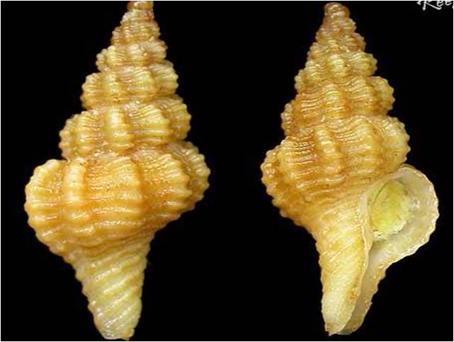Dal lavoro di Giovanni Buzzurroe e Paolo Russo Fusinus Parvulus. Conchiglia piccola, slanciata formata da da 6-6,5 giri...protoconca che appare mamilliforme e globosa. Teleoconca di 5,25 giri spirali, caratterizzati dalla presenza di costoline fitte, ma ben distanti e arrotondate, in numero di circa otto per giro. Su ogni giro vi sono 4-5 cordoni spirali ben marcati, nettamente seprati gli uni dagli altri. Ultimo giro percorso da 16-18 cordoni spirali che sprmontano in modo evidente le costoline assiali, giungendo sino alla base della conchiglia, Canale sifonale corto, dritto e ben aperto... Mi pare che corrisponda.