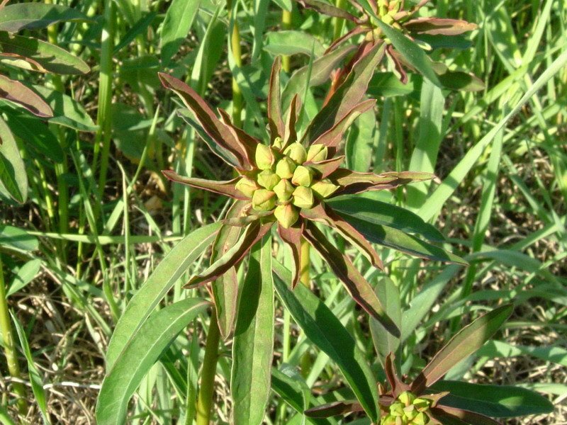 Presente tra le rive dei fossi e lungo le strade di campagna.Ho pensato che si trattasse della Helioscopia,ma le foglie scure vicino alla sommità mi hanno messo dei dubbi.Ho ragione di ciò. Grazie