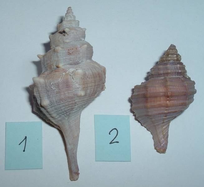 1) magnifico esemplare freak di Bolinus brandaris 2) giovanile di Cymathium parthenopeum