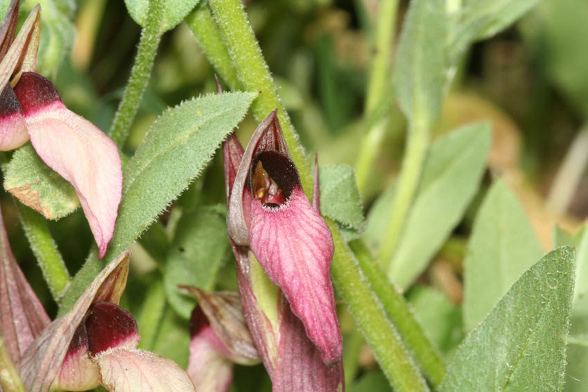 Si tratta di fotografie scattate la scorsa primavera che erano andate perdute con la rottura di un HD esterno e che con grande pazienza e con programmi da investigatore informatico (gli amici più giovani ne hanno sempre una scorta) sono riuscito solo in parte a recuperare. Si tratta dell'impollinazione dell'orchidea spontanea Serapias lingua da parte del maschio della Ceratina cucurbitina. L'apidae, attirato sulla pianta da sostanze chimiche simili ai feromoni femminili da inizio ad uno pseudo-accoppiamento che avviene all'interno dello stretto calice cilindrico, l'insetto è costretto in tal modo a venire a stretto contatto con i pollinii adesivi del fiore. L'adesione dei pollinii al vertice o al clipeo è praticamente inevitabile, l'ape non sembra tollerare molto la vistosa decorazione ma non riesce proprio liberarsene. Se li porterà dietro per giorni e visitando altri fiori ne consentirà l'impollinazione.