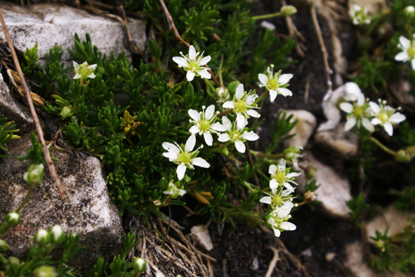 La prima pianta non è una sassifraga, ma una cariofillacea, verosimilmente una Minuartia sp.