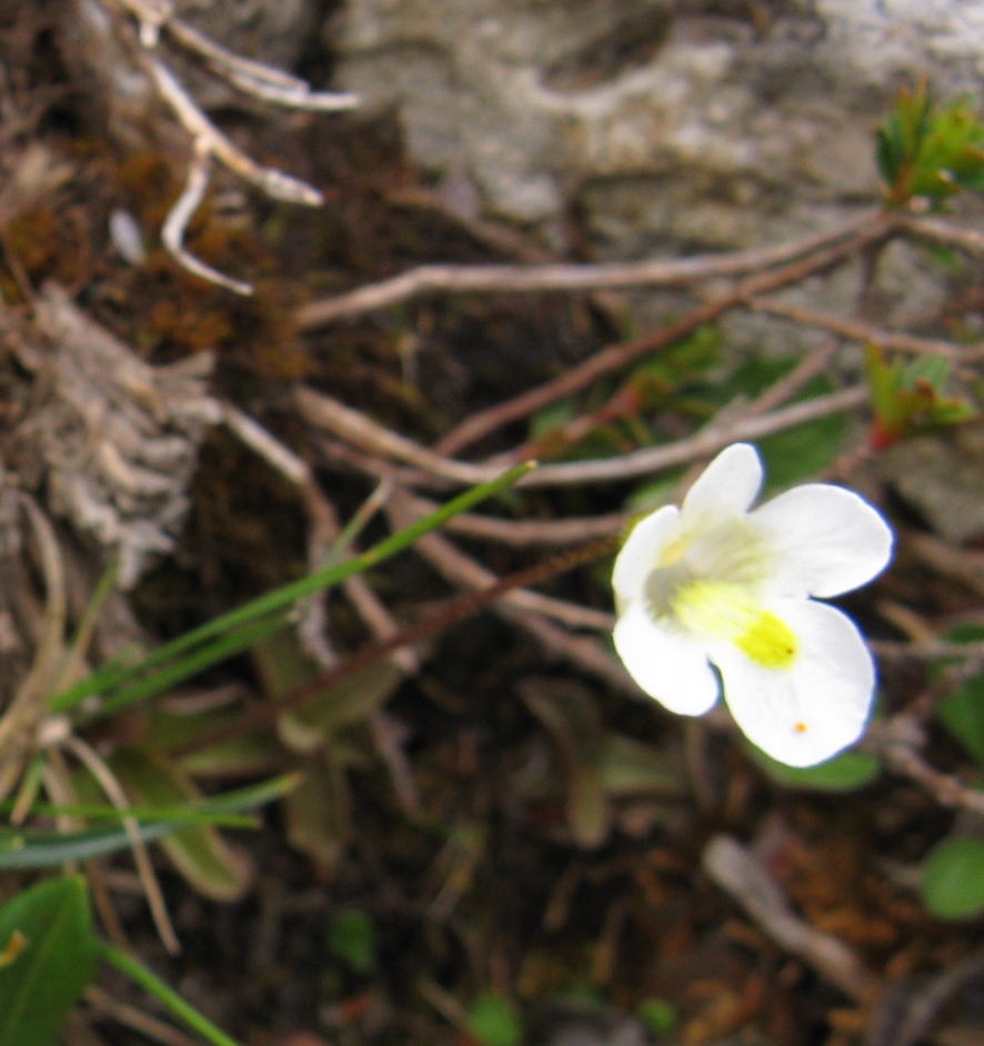 Confermo Pinguicula alpina, compagna della ben più comune Pinguicola vulgaris (fiore azzurro).